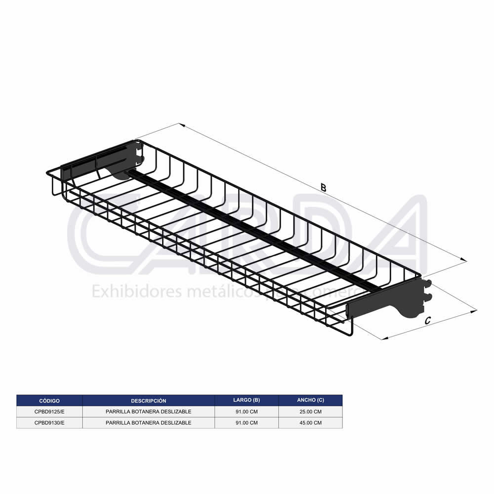 Parrilla para botana con sistema de deslizamiento frontal fabricada en alambre acabado en pintura epoxica