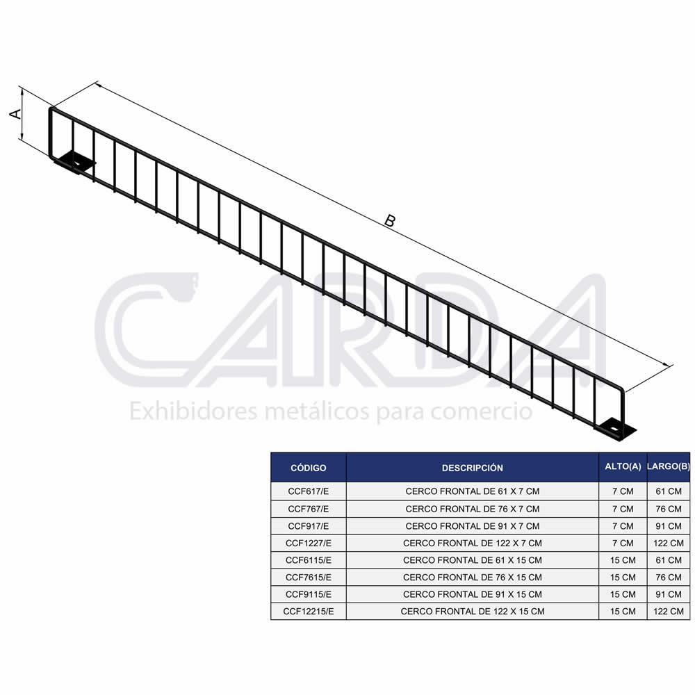 Cerco frontal para entrepaño o charola base fabricado en alambron acabado en pintura epoxica