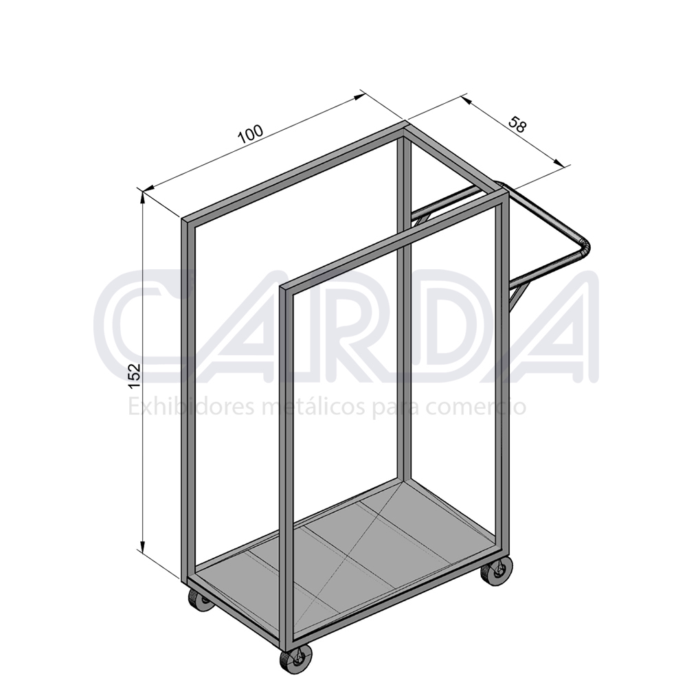Carro de 1 nivel chico con 4 ruedas acabado en pintura epoxica