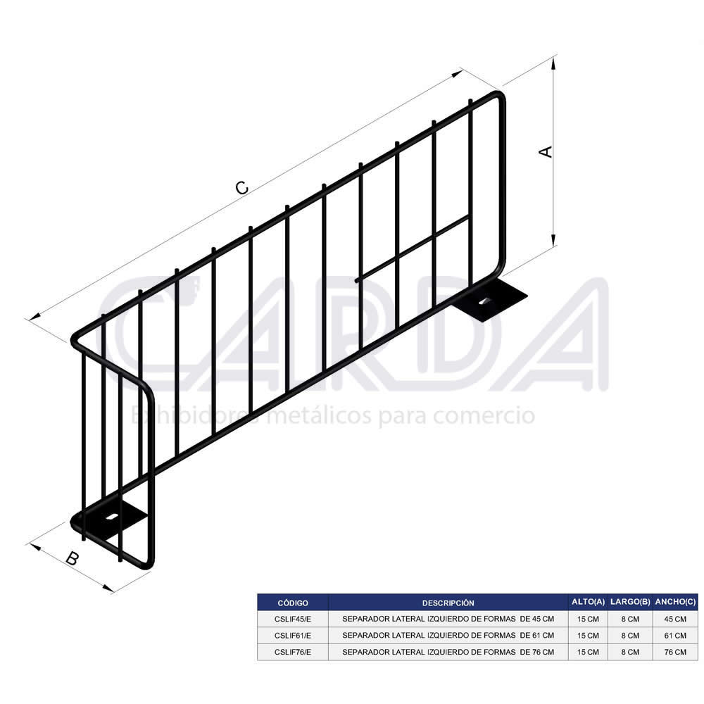 Separador de formas en alambre lateral izquierdo para entrepaño acabado en pintura epoxica